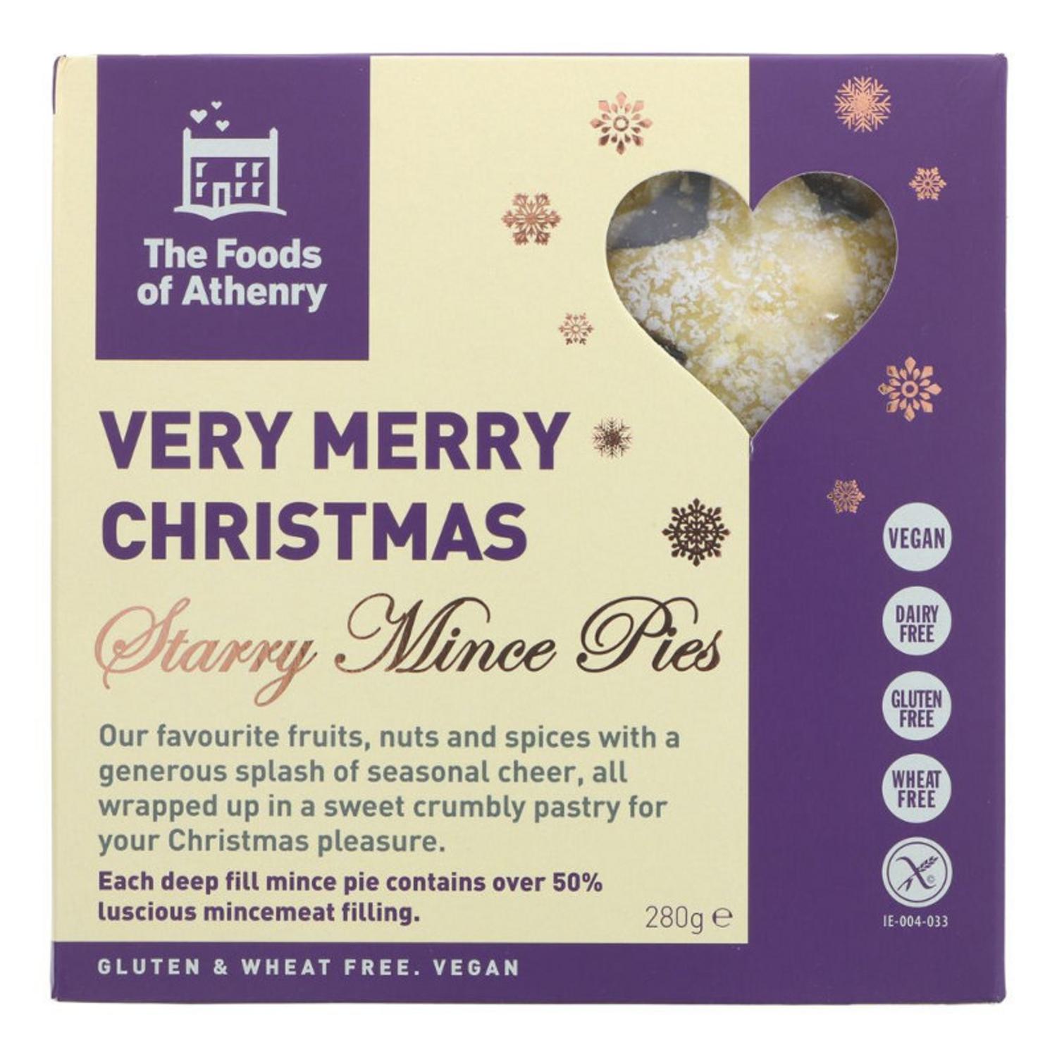 Gluten Free Starry Mince Pies Vegan ingredients: Pastry: Maize, Rice, Potato, Tapioca & Buckwheat flour, 100% Vegetable non-hydrogenated Margarine, Sugar, Raising Agents (Mono calcium phosphate, Sodium Bicarbonate), Xanthan Gum.
